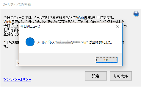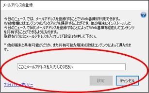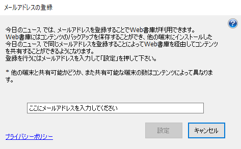 4 自分のメールアドレスが「今日のニュース」アプリのWeb書庫に設定されます