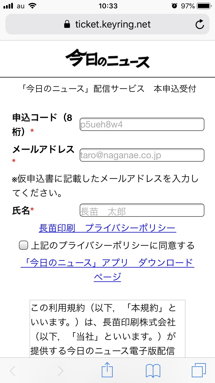 4.今日のニュース配信サービス 仮申込から閲覧まで(iOSの場合)
