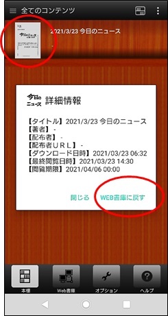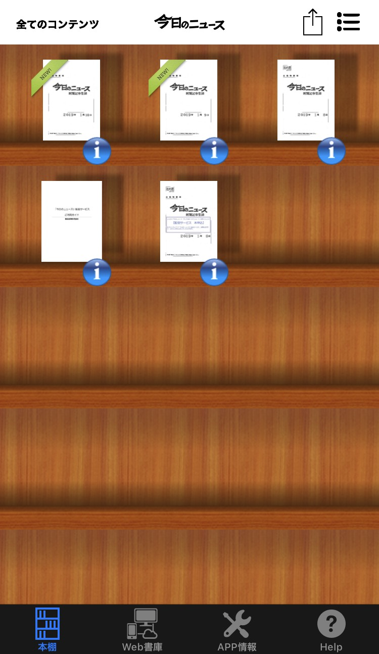 5 閲覧確認用の「今日のニュース」サンプル版がWeb書庫に並んでいるので、アプリの本棚にダウンロード