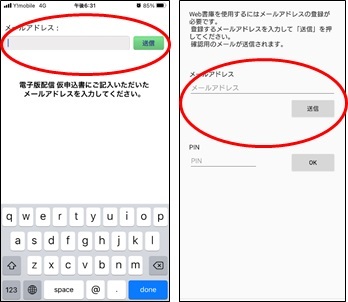 2 メールアドレスの入力を求められるので、仮申込完了メールが届いたメールアドレスを入力(初回のみ)