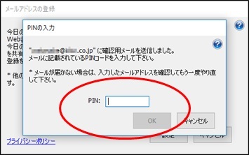 3 入力したアドレスに数字5桁のPINコードが送られてくるので、画面から入力(初回のみ)