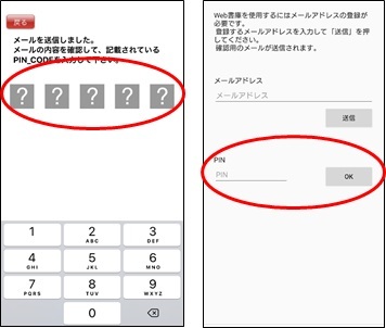 3 画面がPINコード入力画面に変わるので、メールで通知されるPINコード(数字5桁)を入力